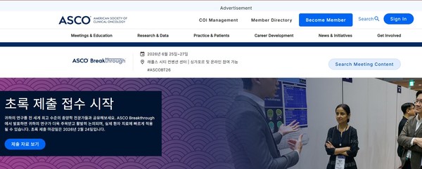 미국임상종양학회(American Society of Clinical Oncology·ASCO)가 2026년 ‘ASCO 브레이크스루(ASCO Breakthrough)’ 회의 개최 일정을 발표하고 이달 4일부터 초록 접수를 시작했다.